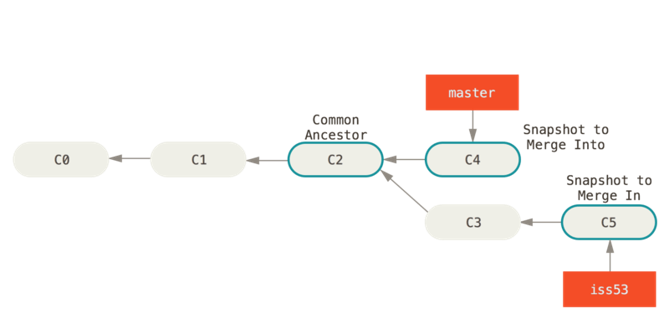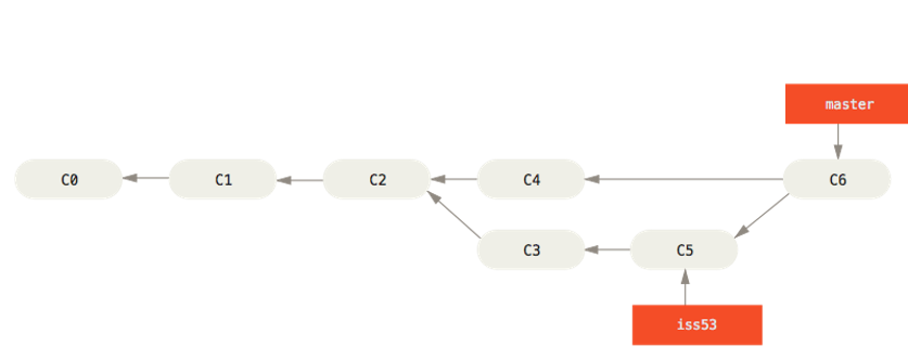 git merge iss53 # yhdistäminen tehdään komennolla merge