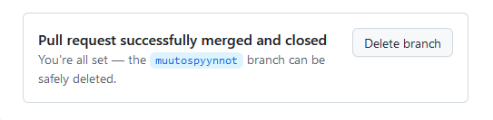 Kun yhdistämispyynnön ominaisuushaara on yhdistetty, haara voidaan poistaa etärepositoriosta.