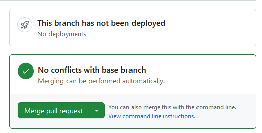 Kun pyyntöön ollaan tyytyväisiä, se voidaan hyväksyä. Tässä tapauksessa yhdistäminen onnistuu automaattisesti. Jos muutos aiheuttaisi konflikteja, ne olisi ensin ratkaistava.